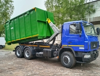Контейнерный мусоровоз с крюковым подъемно-опрокидывающим механизмом («мультилифт»), предназначен для сбора твердых бытовых отходов и крупногабаритного строительного мусора, транспортирования и разгрузки в местах утилизации. Механизм позволяет работать со сменными контейнерами, объемом от 16 до 30 м³.