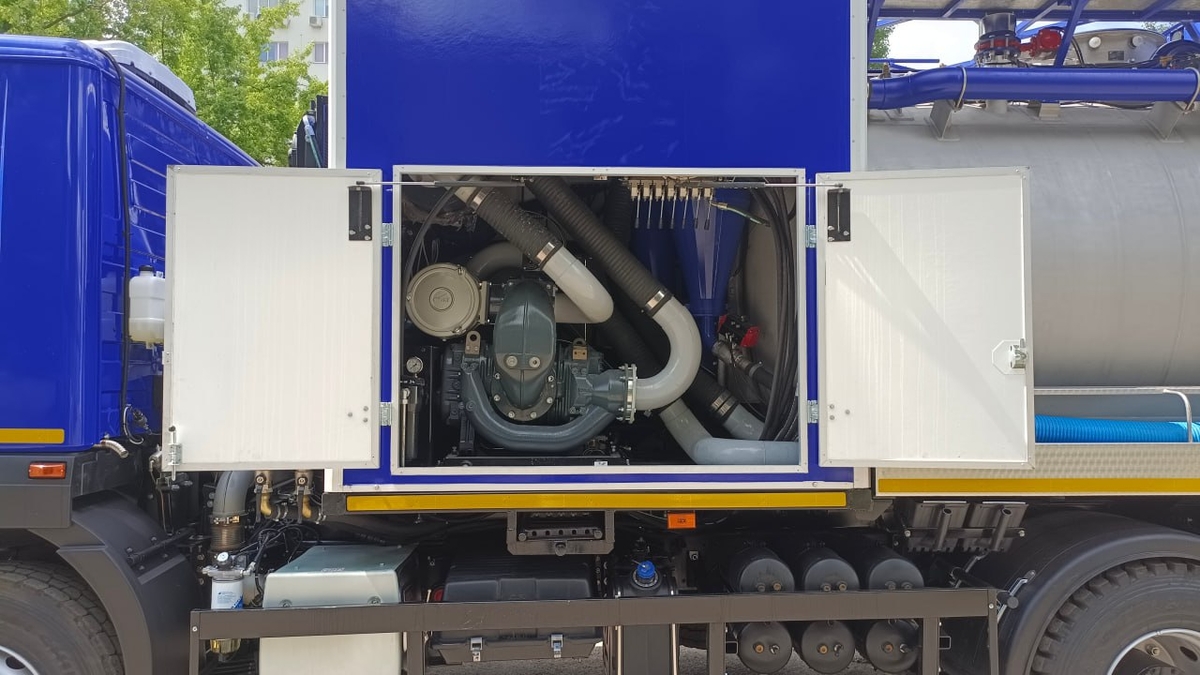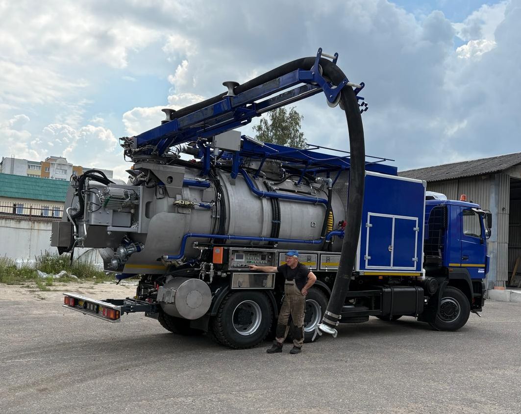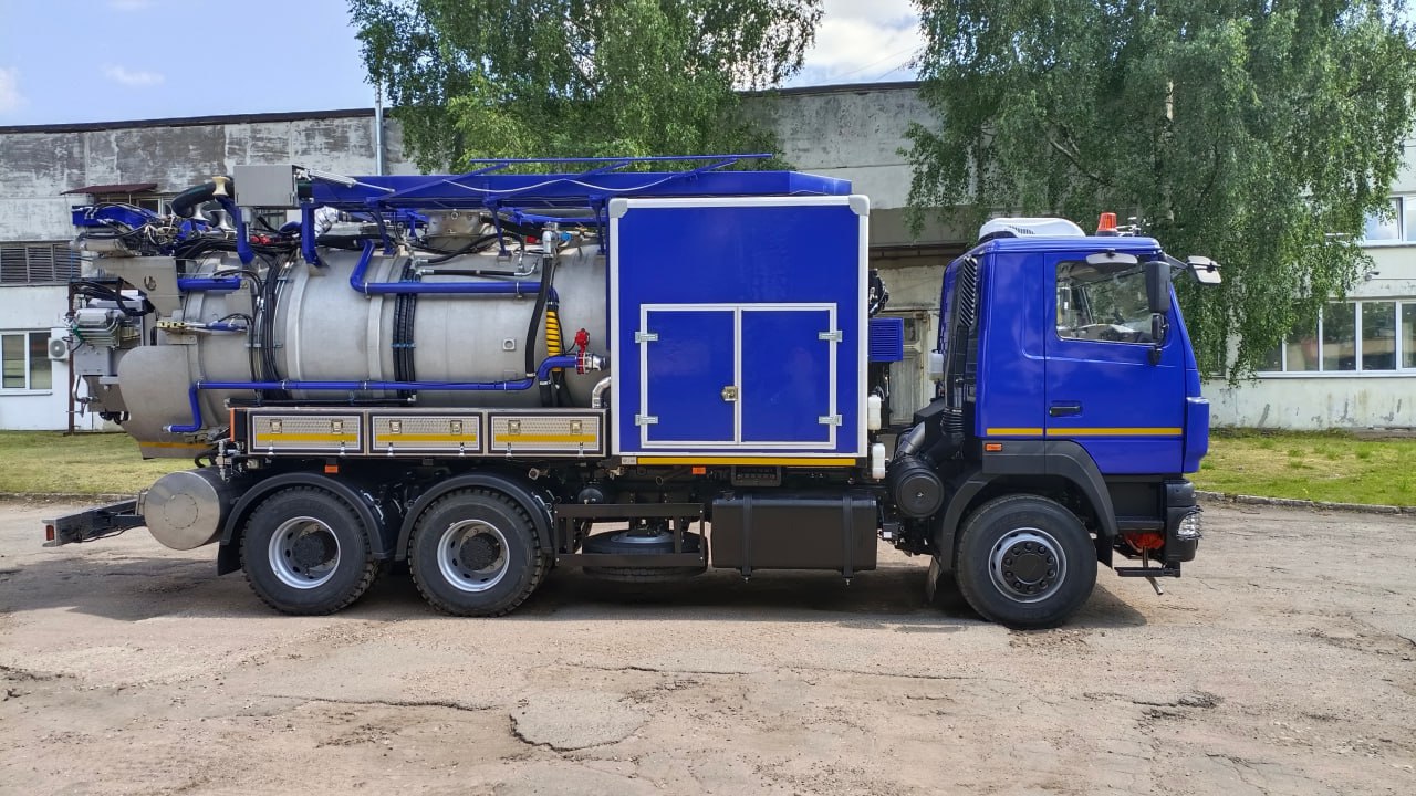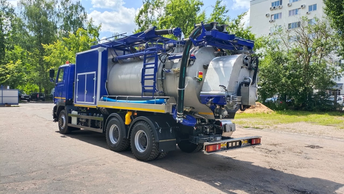 Цистерна и все ее основные элементы (кронштейны, отсеки, трубопроводы, барабаны, заднее защитное устройство и др.) выполнены из нержавеющей стали. Машина укомплектована высоконадежными вакуумным и плунжерным насосами повышенной производительности, что позволяет решать широкий спектр производственных задач, будь то устранение серьезных засоров или откачка иловых отложений с больших глубин.